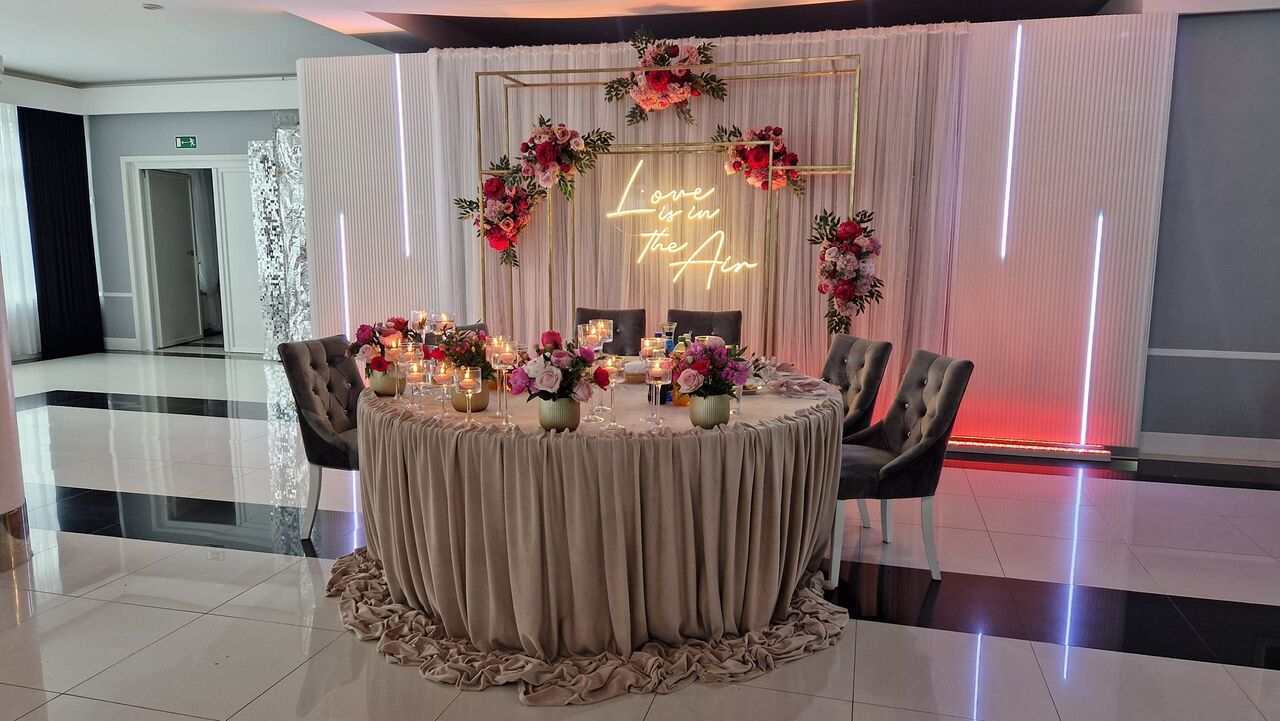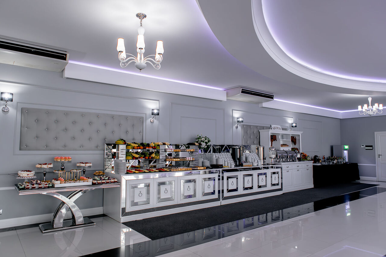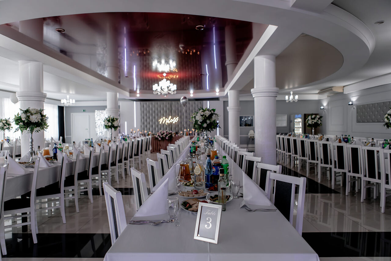 Nasza sala jest w stanie pomieści do 350 gości siedzących w rzędach oraz do 180 osób przy okrągłych stołach.